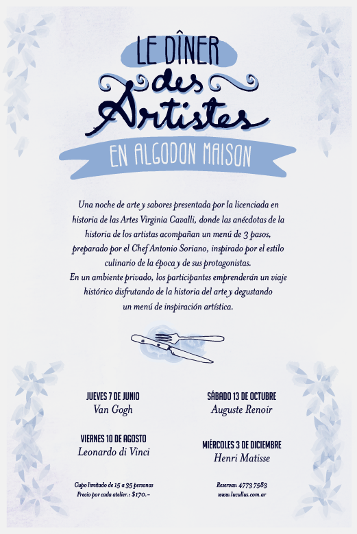 Propuesta de diseño de logo y flyer para cenas temáticas de gastronomía francesa.