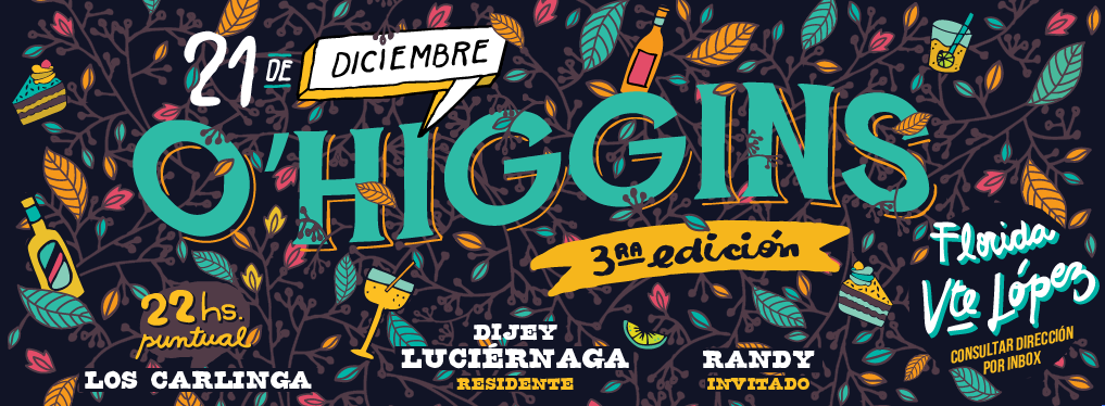 Diseño e ilustraciones para flyer y portada de las fiestas O'Higgins (fiestas veraniegas al aire libre).